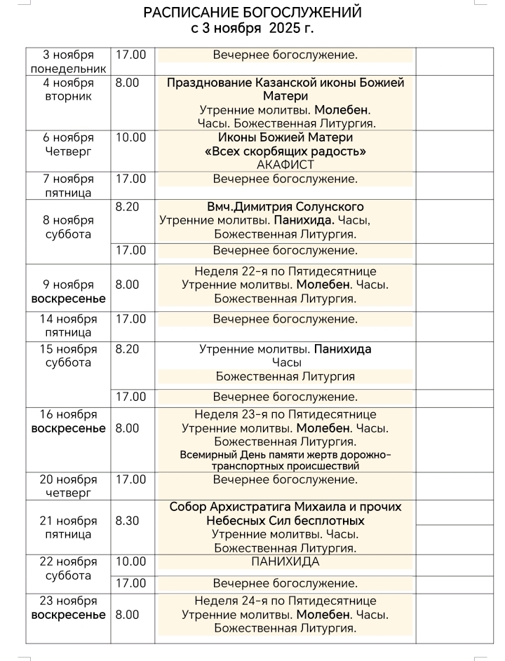 Расписание 3 ноября 2025 г. — 23 ноября 2025 г.